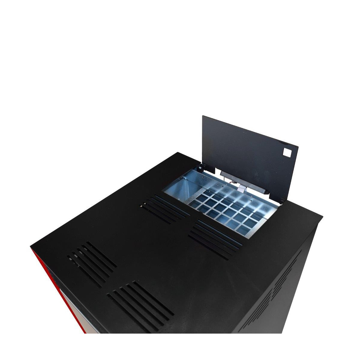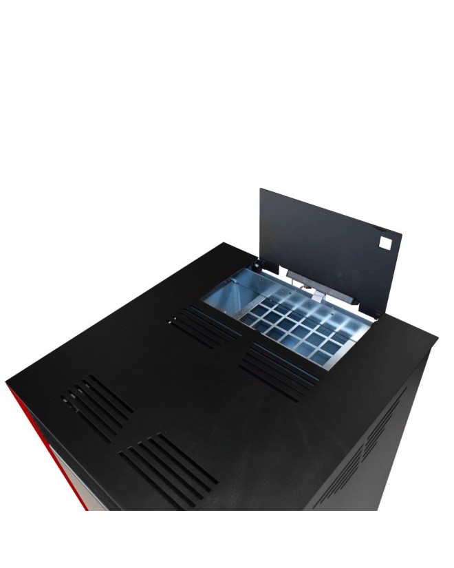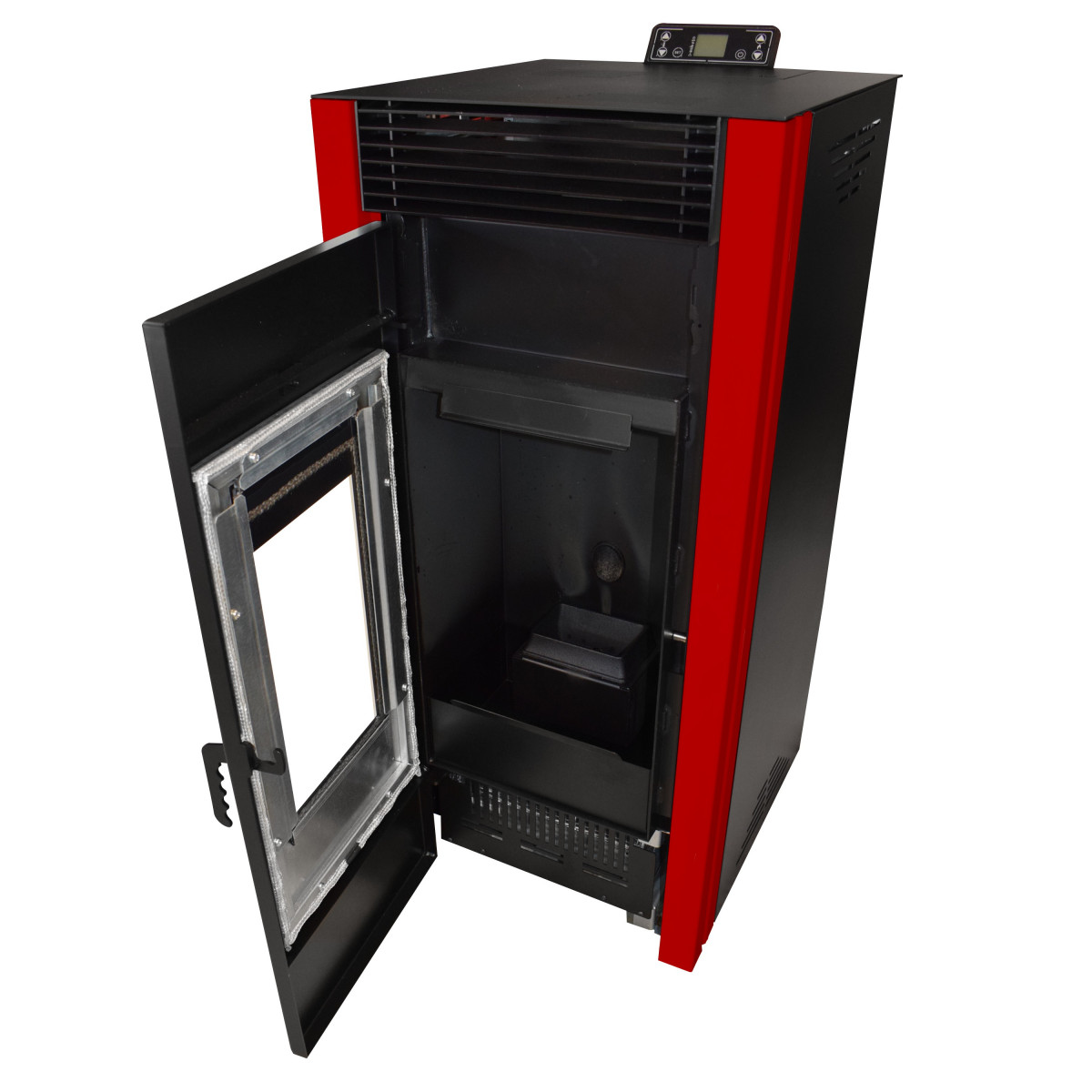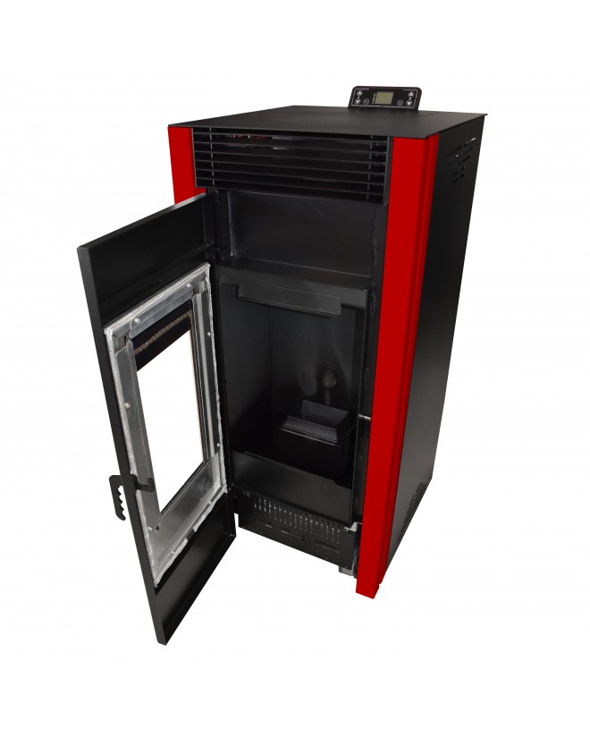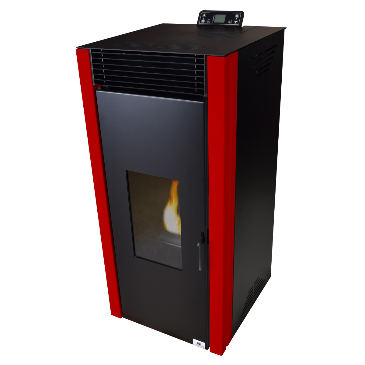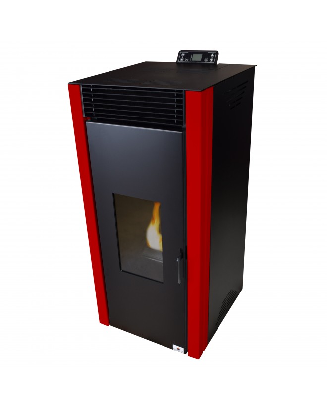 Pellet stove white and black, channeled 12 kW. This stove is available in 3 colour versions: white, red or grey.